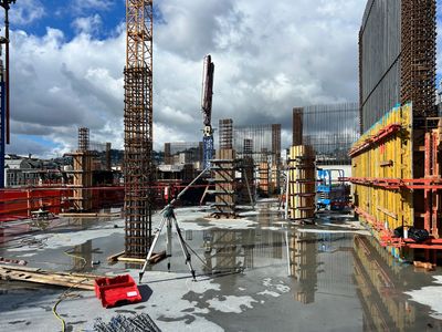 The concrete deck at Level 4 East is being formed in the next couple of days, which will be followed by installation of rebar, MEP lines and post-tensioned cables – in time for the concrete pour in early November.