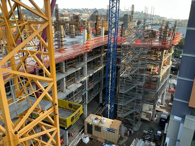 The Level 7 West rebar and PT cables will be installed next, with its concrete pour scheduled for mid-January. The Level 7 East deck is right behind, with its concrete pour scheduled for later in January. All the Level 7 walls and columns will have rebar installed and concrete poured by the end of the month.