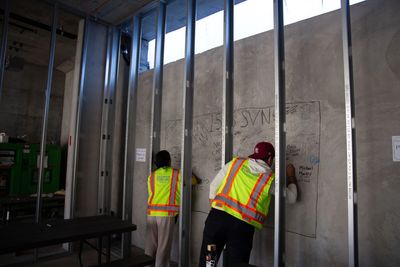 As the exterior continued to wrap the building openings, the MEP rough-in continues inside, followed by insulation and drywall activities proceeding in May.